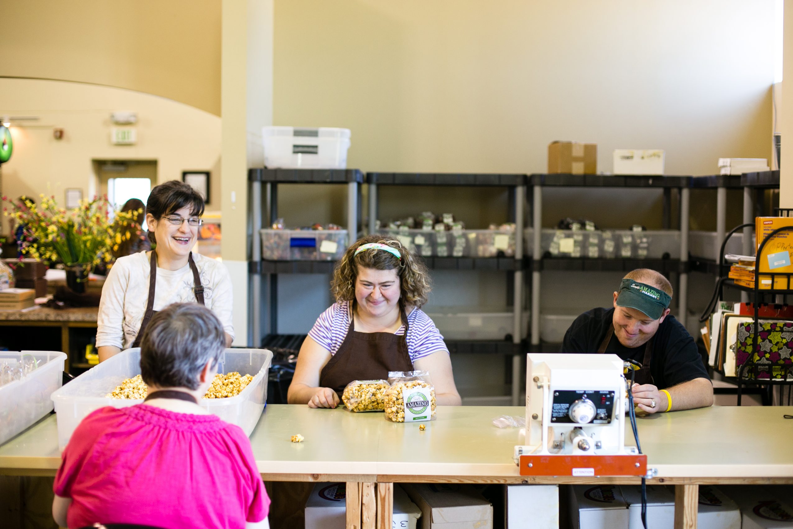 In 2007 OE was exploring opportunities to employ adults with disabilities and provide a strong foundation for training and support while creating an income stream to move toward self-sustainability. What started as a small fudge kitchen is now known as The Simply Amazing Market, which creates and sells fudge, assorted popcorns, glazed nuts, hand-painted ceramics, and candies throughout the year, shipping nationwide.