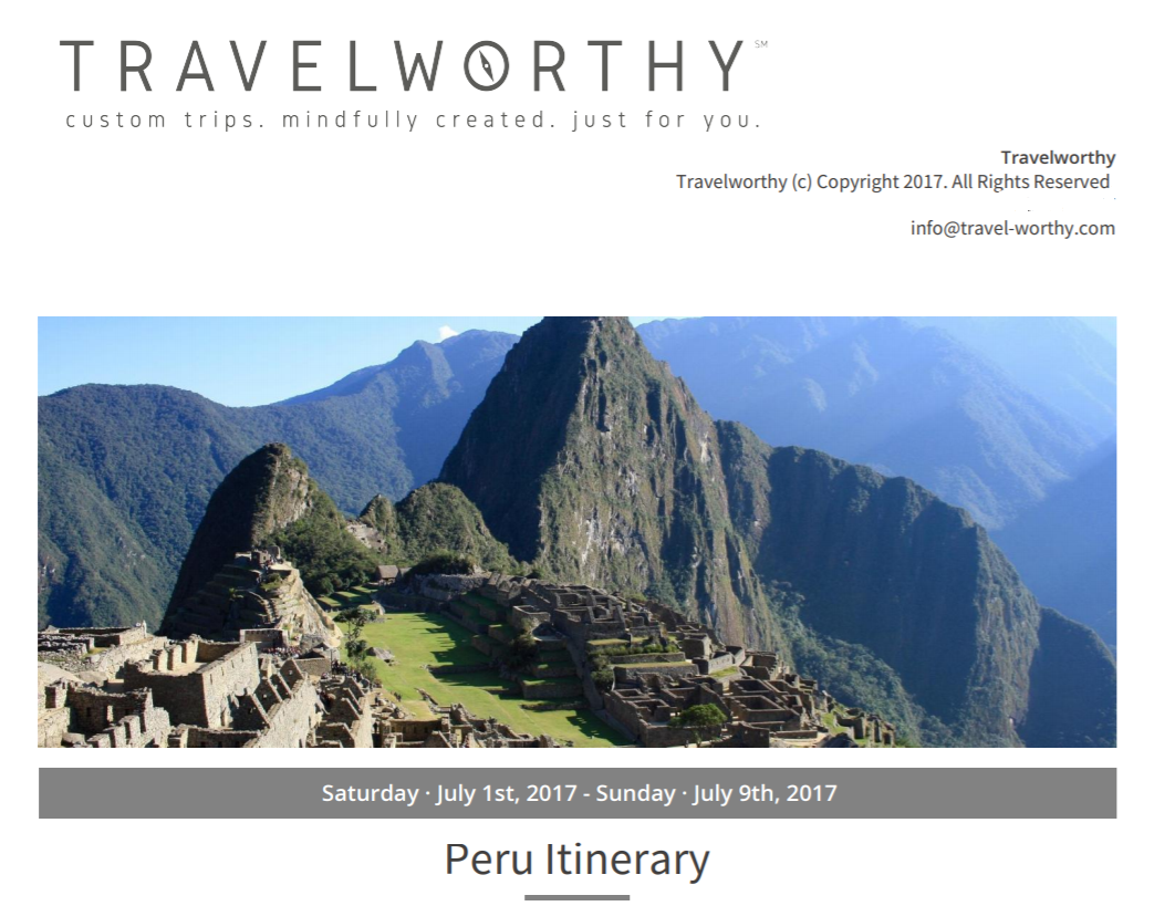 Travelworthy is a custom travel planning company that encourages you to ‘Let the trip take you!’ Unlike a traditional travel agent – we work for and are hired directly by you – the traveler. This model allows us to remain independent and to provide you with a robust and detailed itinerary that best suits your needs. Not one that best suits our bottom line. Our planning services are tailored specifically to your personality and travel style and allow you to optimize those precious vacation days. Your final itinerary is delivered using an application accessible on your phone, online, or printable PDF so you can easily find your next stop, sight, location, etc. We eliminate the stress, anxiety and most importantly time that often goes along with planning travel. All you’ll have to do is pack your bags, relax and have fun – we take care of the rest!