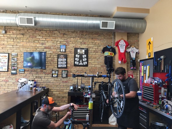 We are a small service focused bicycle shop. Both Ben and I have an extensive background in professional bicycle repair. Also, Ben has worked for a women’s professional race team at races all over the world. In addition to our storefront, we also have a van that we use for mobile repairs. Our van has everything that we would need for most tune-ups to be completed on-site… We have an extensive selection of repair parts so that the customer can get back on their bike as soon as possible.