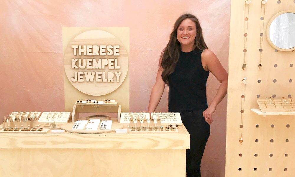 My name is Therese Kuempel and I am the owner and metalsmith of Therese Kuempel Jewelry. All of my pieces are handcrafted with love from start to finish in the suburbs of Chicago. My jewelry is hand made using a combination of metalsmithing and metalcasting techniques and finished with semi-precious gemstones. I am involved in every part of the making process from fabrication, finishing, packaging, shipping, photography, website production, answering emails – everything! My jewelry consists of necklaces, earrings, bracelets, and rings, but I think that the product that tends to set my designs apart are my handmade lighter cases. Something that began as a novelty item and a “thing” that I made for fun for myself, I decided to produce them on a larger scale and offer them for retail and wholesale. Once I did, they became something that I think people found unique and coveted.