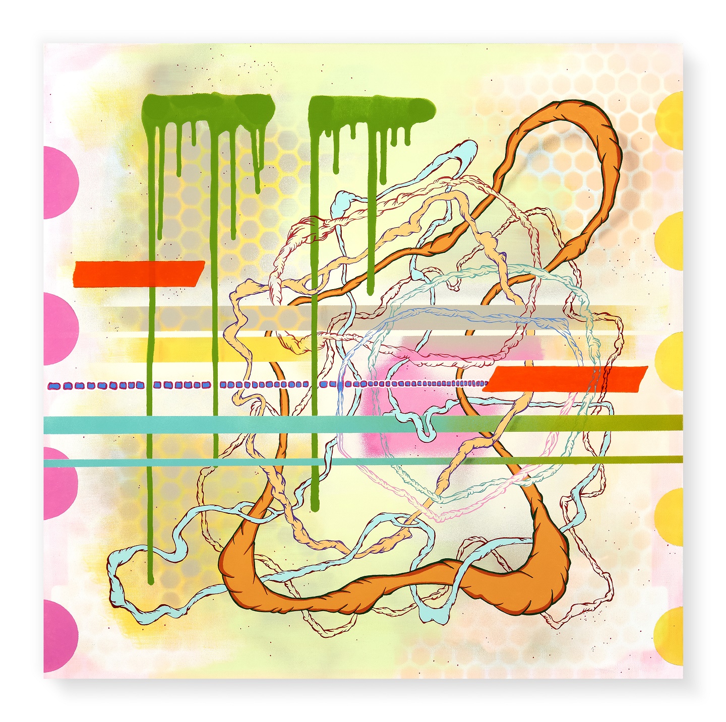 After receiving my Bachelor’s Degree in Fine Arts in 1998, I accepted a job with the advertising firm Leo Burnett, in Chicago. I started in the mount room, where I worked mostly on new business pitches, creating presentation boards and model mockups for potential new clients. This was typically a one-year minimum program in the mount room that groomed you for what was ahead in the advertising world at Leo Burnett. It wasn’t uncommon to work 24 to 26 hour days. Whoever could fashion the best bubble-wrap bed to nap in while you waited two to three hours for a large format printout to be completed was the big winner of the night (the speed of technology has definitely advanced since then). I disliked the job so much, mostly the long hours that I worked as hard as I could to earn the right to be placed into a production design group. I was also waiting tables at the Hard Rock Cafe to make ends meet. Three months later after being hired, I was promoted into the new business group as a production designer. While at Leo Burnett, I met two senior-level creatives, Scott English and Victor LaPorte, who took me under their seasoned wings and taught me everything I know about design today. They were huge mentors in my life and still are to this day. Scott and Victor left Leo Burnett in 2006, and in 2007 they started their own agency, SCOTT&VICTOR, where they sometimes pulled me in to help with design projects. I had mostly studied printmaking and painting at The School of the Art Institute, so to be taught the skills of design by these two professionals was an amazing experience that I will forever value. I worked at Leo Burnett for almost ten years before leaving and then jumping around to several small design firms in the city for the next seven years. After less than one month of working for one particular small design firm in Wicker Park, I was let go. This was a huge blessing in disguise. My wife was teaching at the time, so I took the summer off to spend time with her and our one-year-old daughter. I then started my own design firm, T. Jones Creative, in September of 2010. It was definitely both exciting and challenging starting my own company, but in my head, I knew that I had to get back to my passion of painting and creating art. Scott and Victor provided that kick in the ass that I absolutely needed. I still currently own and operate T. Jones Creative and have been consistently painting for the last nine years.