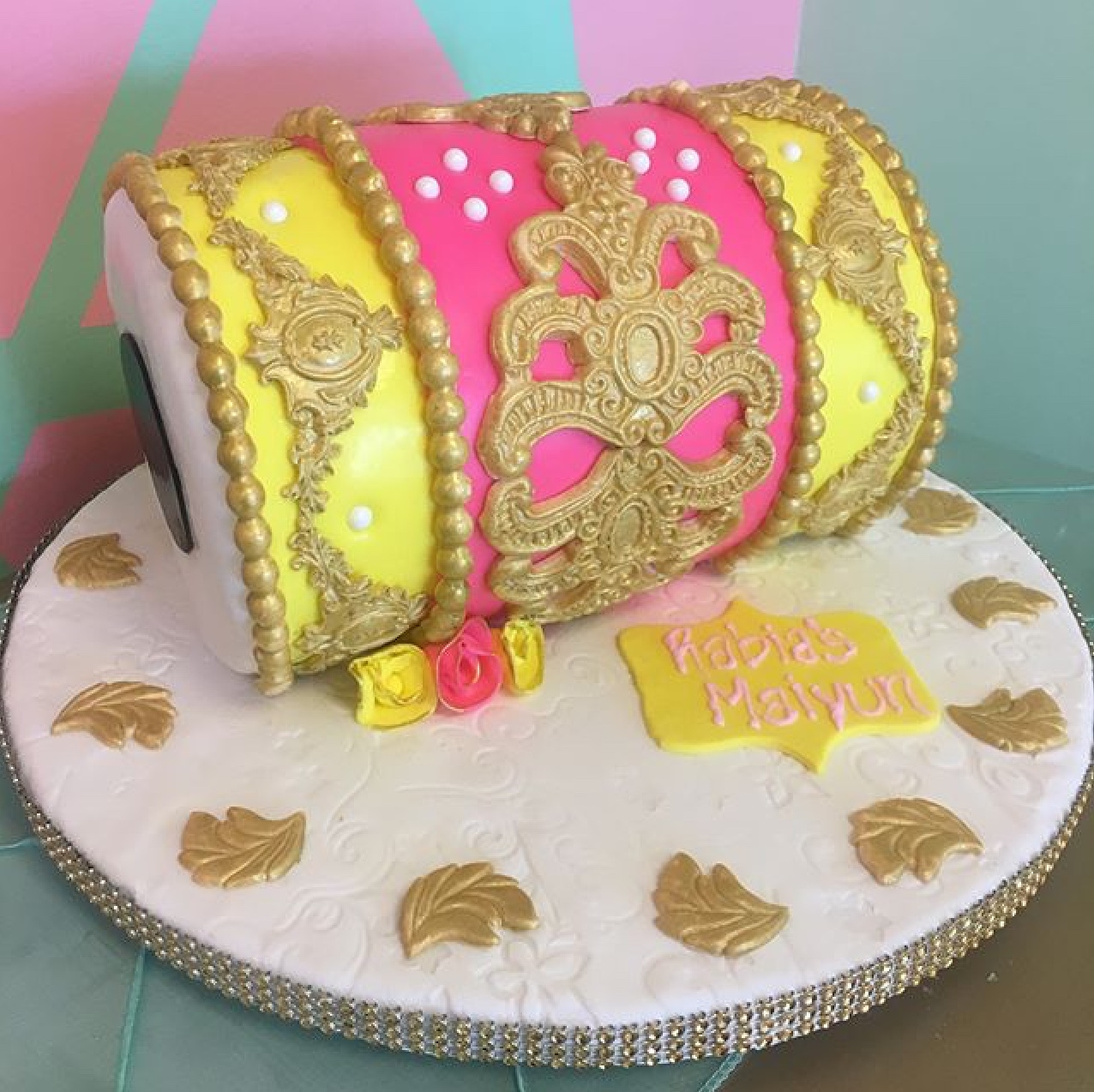 After completing that four-week class, I continued making fancy cakes for family & friends and my siblings really encouraged me to turn this into a business and named the business for me and set up social media pages for it at that time. I kept learning more and more through trial and error and I wasn’t yet super keen on turning this into an actual business, I never really had that intention at all. I would take orders here and there to have the opportunity to work on a new technique or design. I was really just focused on creating, it was therapeutic for me, it excited me, I loved figuring out how to make new designs, internal structures etc.