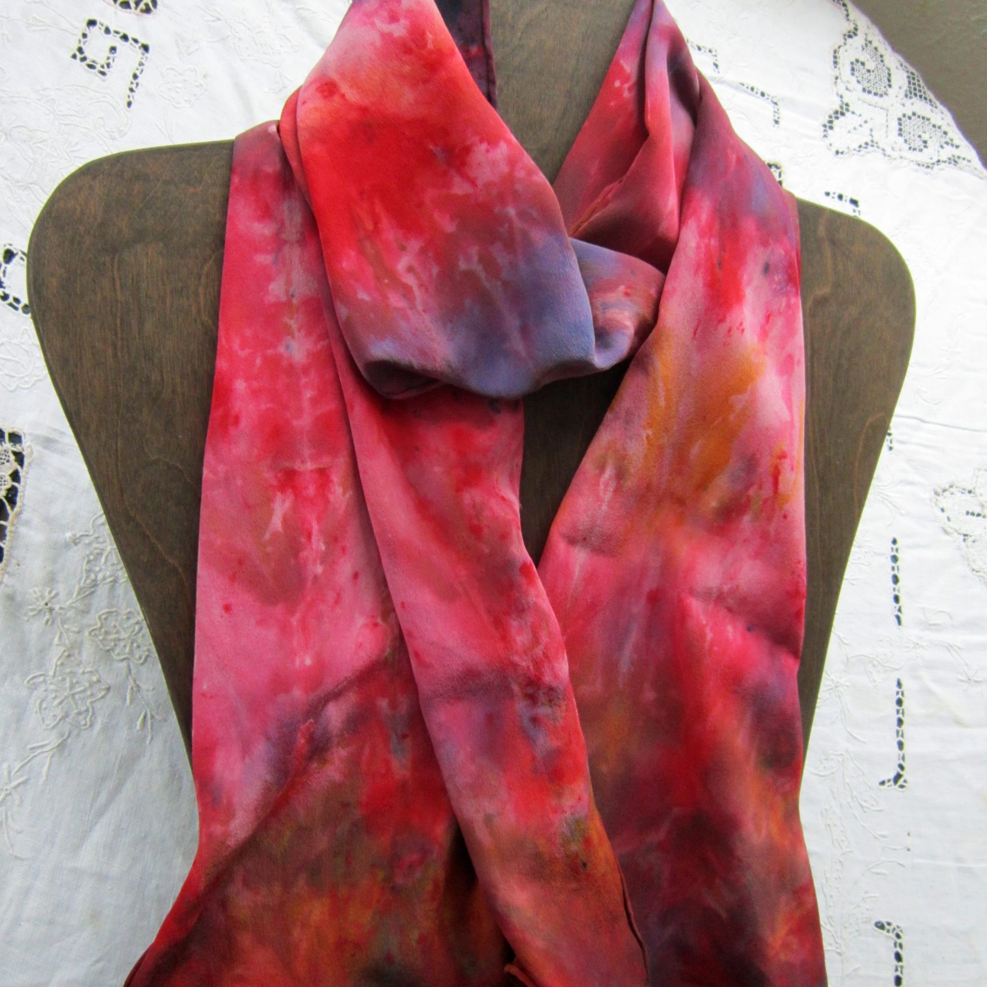 When I was young, I showed my drawings in many art fairs. These days I only show my scarves in a few because the entry fees are much higher now. For me, having a day job was essential. It took valuable time away from my art, but it paid for living expenses, as well as my art supplies and classes. A city like Chicago has galleries, but also restaurants and cafes where artwork can be exhibited. Libraries sometimes have art exhibits and offer authors a chance to read their work. Unfortunately, there are fewer bookstores now and they are not as open to self-published authors as they could be. Open mics are usually dedicated to writing or music and offer a chance to hone one’s skills and become part of a creative community. A city like Chicago offers other opportunities for people in the arts to join a community: writing groups and associations; renting studio space; taking classes at places like Lillstreet Art Center or the Old Town School of Folk Music.
