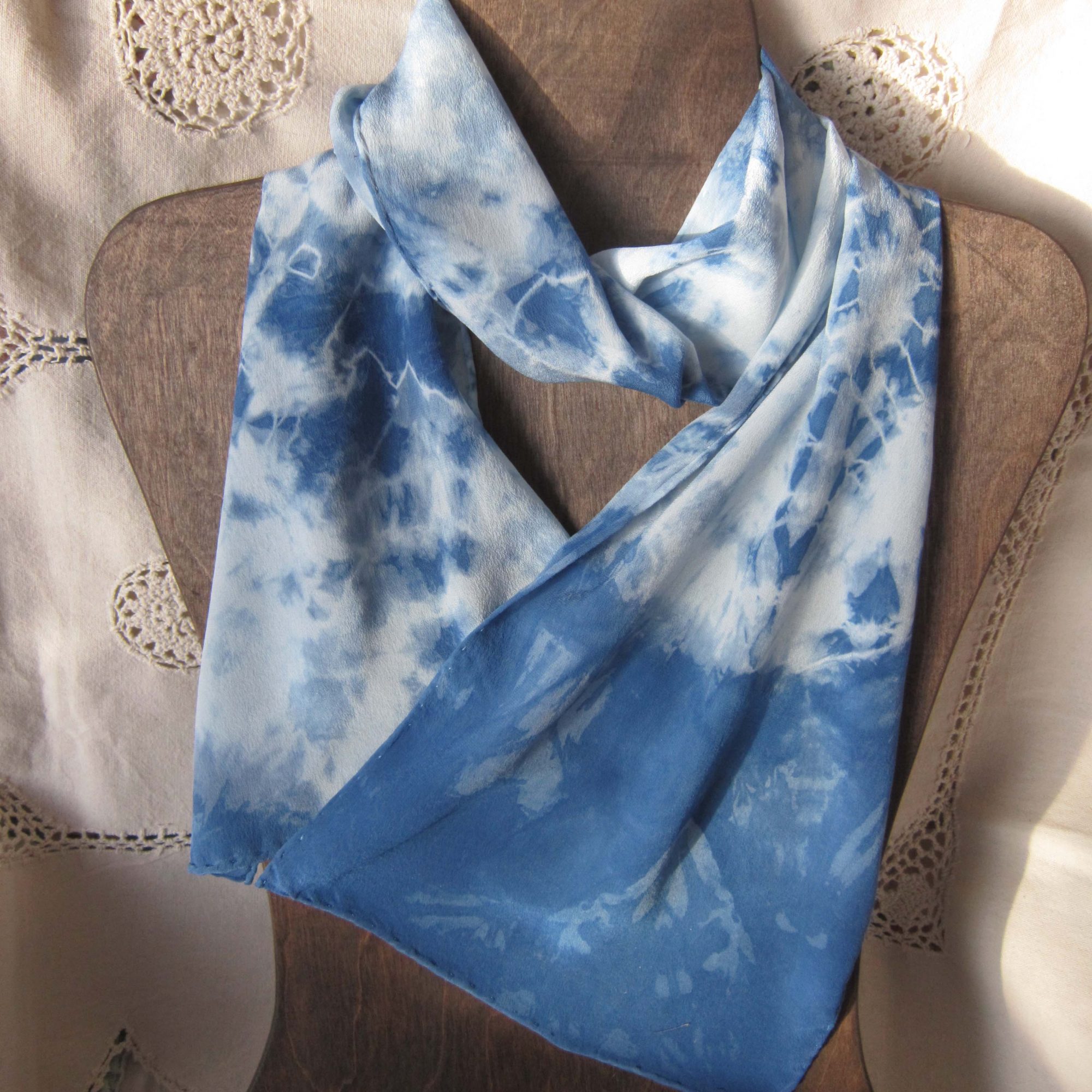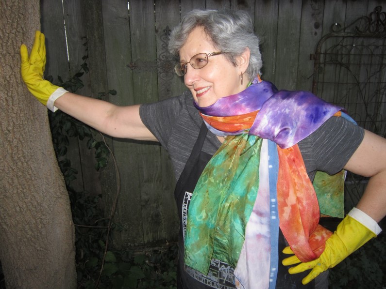 I think the highest form of artwork I do is my writing. One of my goals in life was to write a book. My first novel “Dreams of Darkness and Light” took 12 years from start to finish. Distance is necessary to gain a realistic perspective on one’s work. But there were times I didn’t touch the manuscript for a year or two. And I discovered that most writing is actually editing, lots of editing. With self-publishing becoming more acceptable, I decided to go that route. I’m proud of the result. It’s an unusual tale of a woman who gets caught up in a vision quest through her dreams. I used magical realism to create a mystical, spiritual story of transformation. Ultimately, it’s about how one individual can make a difference in the world, sometimes through their artwork. I was inspired by a visit to an indigenous village in Oaxaca, Mexico and by my church, Wellington Avenue United Church of Christ, which has been involved in social justice issues for over 100 years. My second novel, “The Ballad of Sam and D. Lila” was inspired by my own experience as a singer/songwriter doing open mics. It’s more of a romantic comedy with a few nods to the biblical story of Samson and Delilah. There’s a transformation theme in it, also, but it’s mainly a fun read. “Everyday Mysteries” is a collection primarily of poetry I wrote for open mics, but it includes more recent work. My poetry is very accessible and often narrative. As a fiber artist, I mainly hand dye silk scarves, which are sold at art fairs, but also in my Etsy shop. I enjoy telling customers about the techniques and types of silk I use. And I occasionally see them again and love hearing about how they’ve enjoyed wearing them or giving them as gifts.