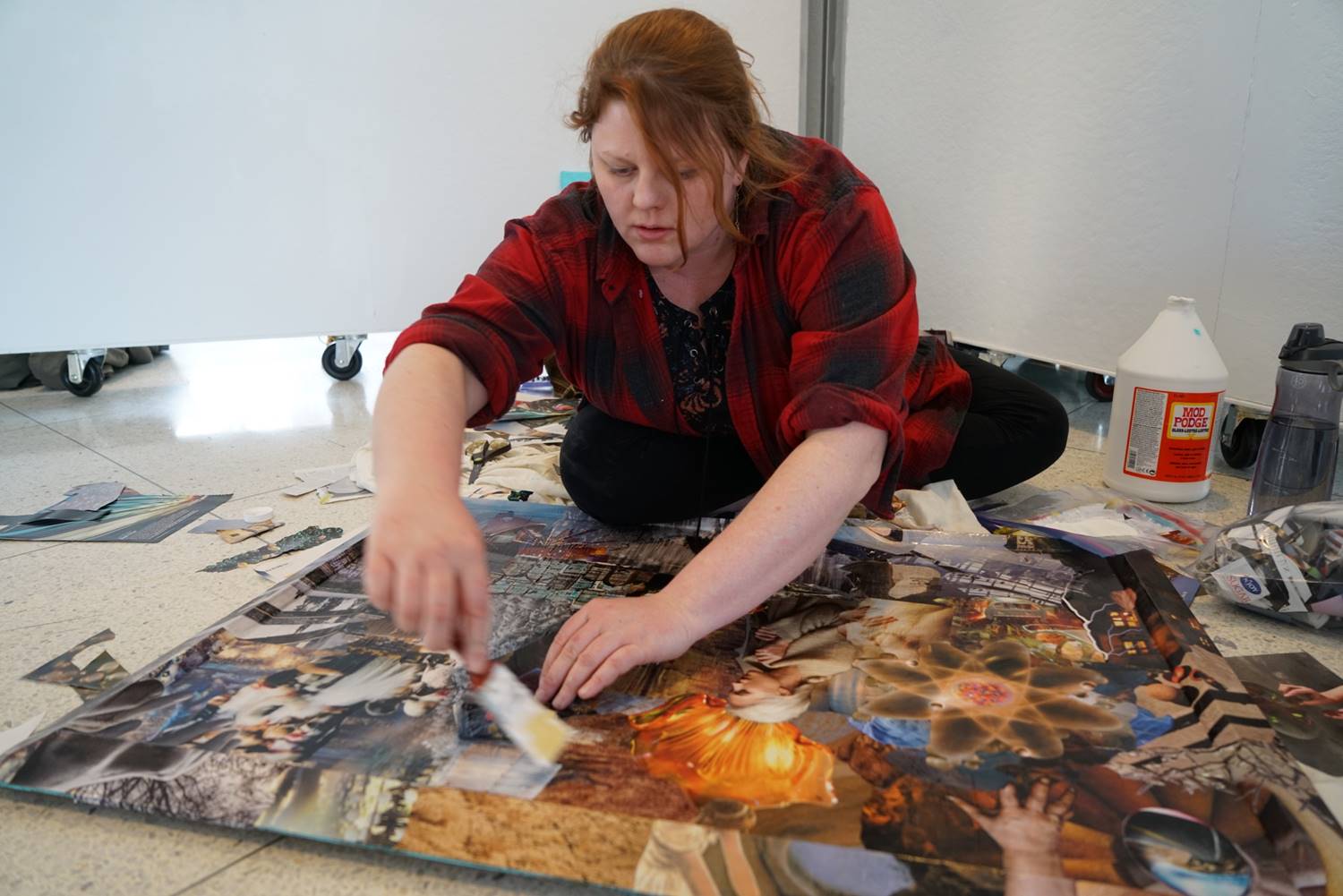 I am a mixed media collage artist with a passion for reusing other people’s unwanted materials. I have been creating collage art since my mom taught me how to cut and glue at a very young age. I knew that I always wanted to be an artist but I abandoned the idea sometime in high school, when it seemed impractical and unobtainable. I went to Illinois State University for a year as an English major but was unsure of wanting to continue on that path. I came home and went to community college where I took some art classes. When I finally had the opportunity to create a collage piece for an assignment, I was so excited. But after a brutal critique, I stopped creating for years.