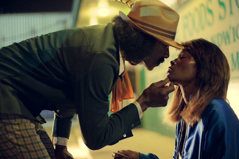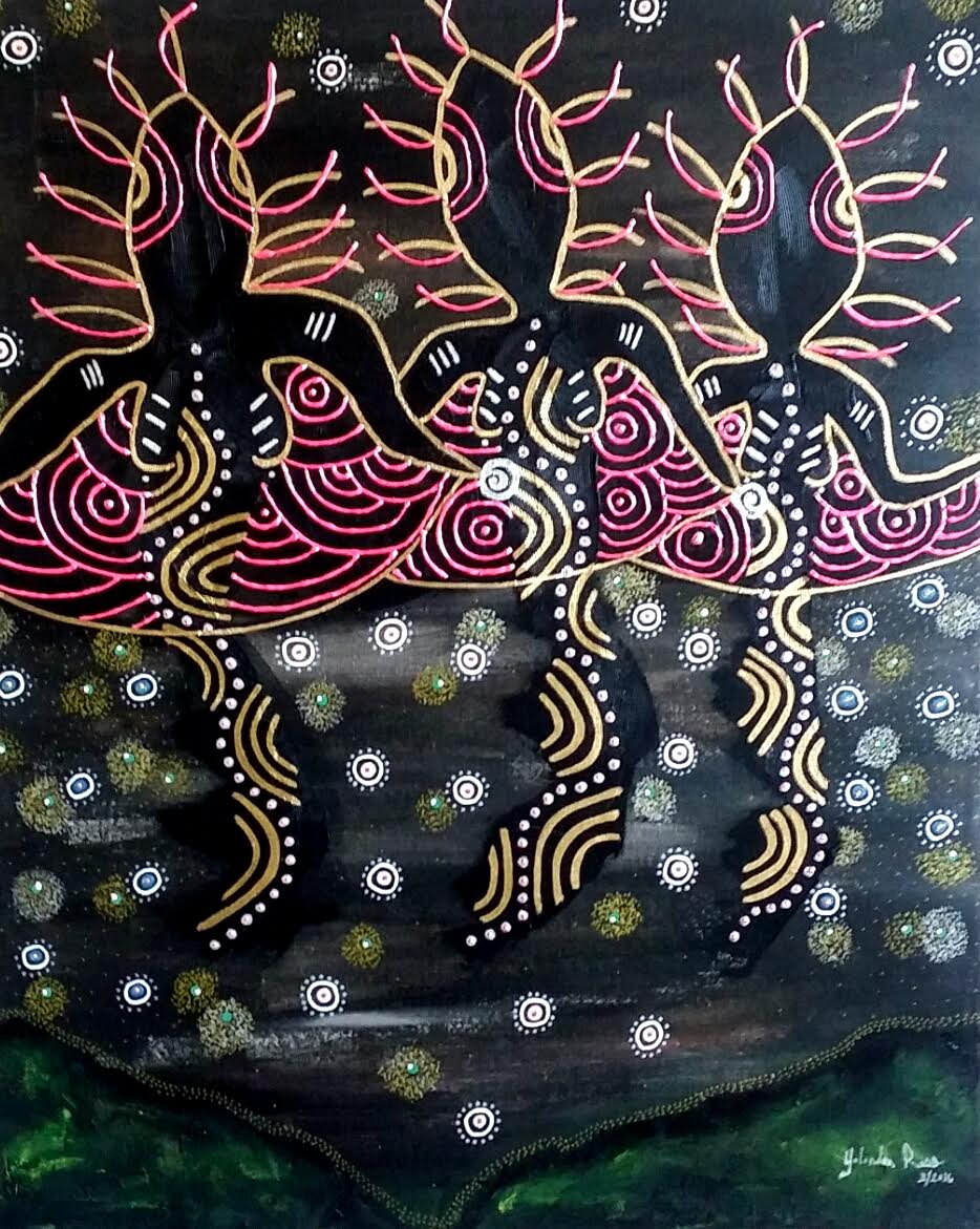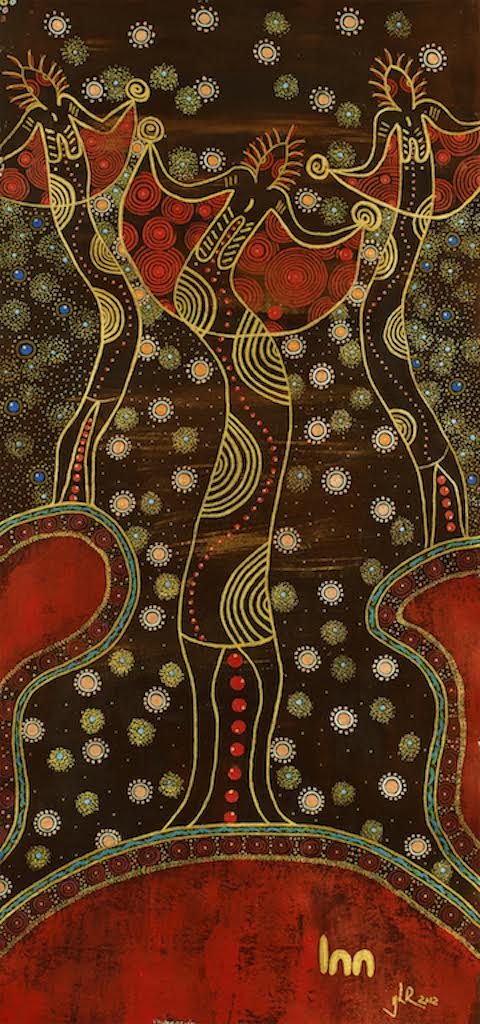 Breaking Night Poster, Girl On Car, Disco Man and Girl,- “Breaking Night” stills by Craig Mulcahy. Artwork-“Spirits Giving Life (Black Painting), “Mother and Child Protected” (Red Painting), “Clear Thoughts, Serene Path” Collage- All Art by Yolonda Ross
