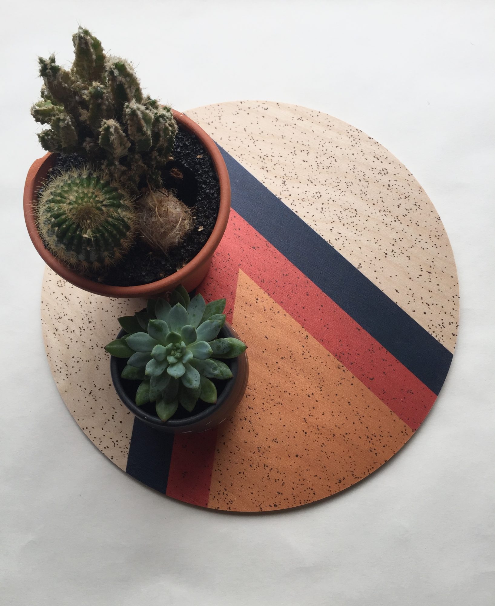 We are also known for our giant coaster. These are exactly what they sound like; an 11” diameter coaster. We like to use them on the end tables in our house. Or as a centerpiece on a coffee table. They are also great as plate chargers, plant plates, mousepads, and trivets for a warm dish. They are such fun pieces, we are so pleased our customers like them as much as we like to make them. It’s also super fun when they come to us and tell how the new use they’ve found in their own homes for the giant coaster.