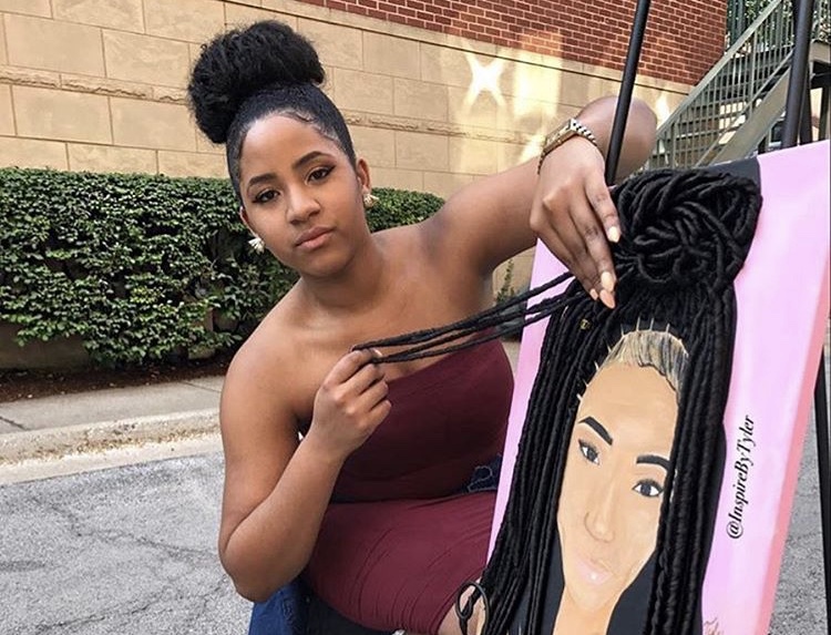 Inspire by Tyler is known mostly for paintings of black women with real hair. People truly connect to these multi-dimensional paintings. I create custom paintings and am a visual performing artist. One thing I am most proud of is giving back. I have an Inspire by Tyler scholarship which encourages youth to think about their purpose and passion in life. I mentioned how I lost sight of my true purpose as I was going through my engineering program. I want students to take a step back and really think about where their heart is and choose an academic career path accordingly.