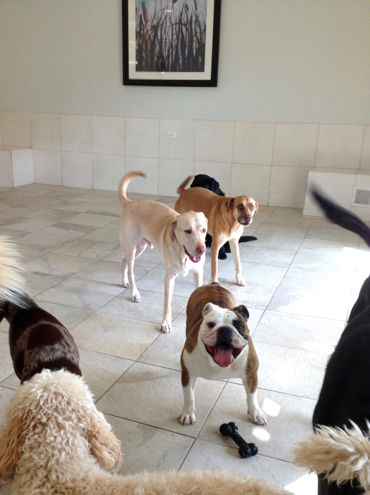 We’re also known for our outdoorsy spirit – we have a big yard and we like to use it! Neither rain nor snow will stop the fun, and in fact, often adds to it. We provide the rather unique feature of direct access at will to our outdoor yards via customized dog doors so that each of our guests can enjoy their day at their own pace and in their own way.