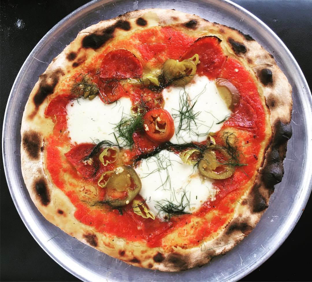 Our low dome wood-fired oven built in the Neapolitan style is maintained at 1000 degrees to beautifully cook a pizza in 90 seconds. With the taste of the wood fire and warmth of the hearth, we look to combine the old with the new to make the best tasting food possible!