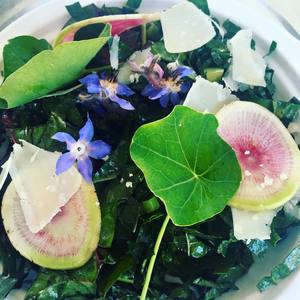 Our menu changes each week based on seasonal availability at our organic farm and other local farms. You can see a selection of recipes on our sample menu and contact us for today’s offerings.
